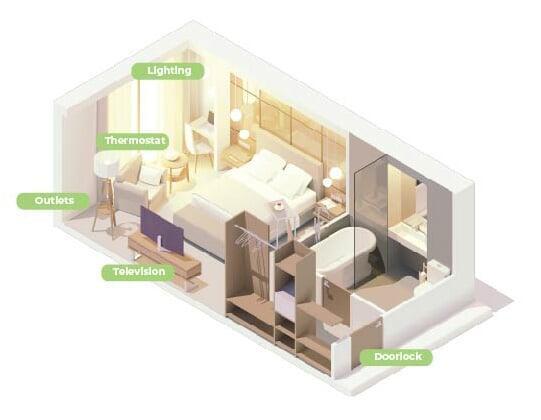 Integrate with PMS software, door locks, lights and other IOT devices.