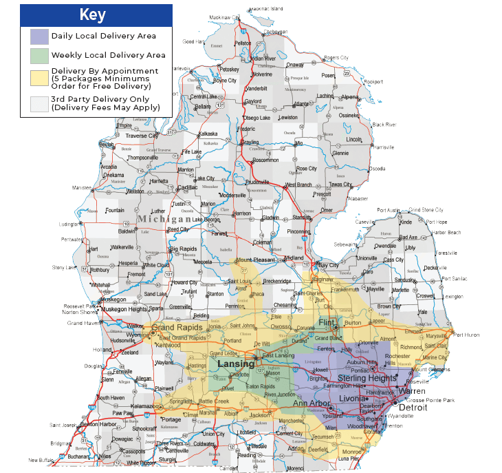 Great Lakes Supply Co. (GLSCO) offers free local delivery services to Michigan's Detroit Metro, Ann Arbor, Lansing, and Flint areas on appliances and packaged HVAC with no minimum order quantities. We provide flexible delivery options to best fit your needs.